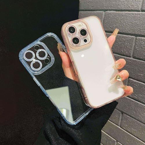 KMXDD キラキラ iPhone 14 Pro 用 ケース ラメ入り デコ 透明 クリア カバー ストラップホール付き きらきら 可愛い カメラ保護 アイフォン14プロ 用 透明ケース レディース 女性,ブルー