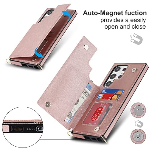 GOKIGIOD 適用 Galaxy S23 Ultra ケース ショルダー 窓口式 カード入れ スマホケース ストラップ付き ぎゃらくしーS23ウルトラ SC-52D SCG20 カバー 手帳型 斜めがけ 可愛い GalaxyS23Ultra ショルダーケース 首かけ 肩掛け かわいい おしゃれ RFIDスキミング防止機能 ロング クロスボディ 携帯カバー ピンク