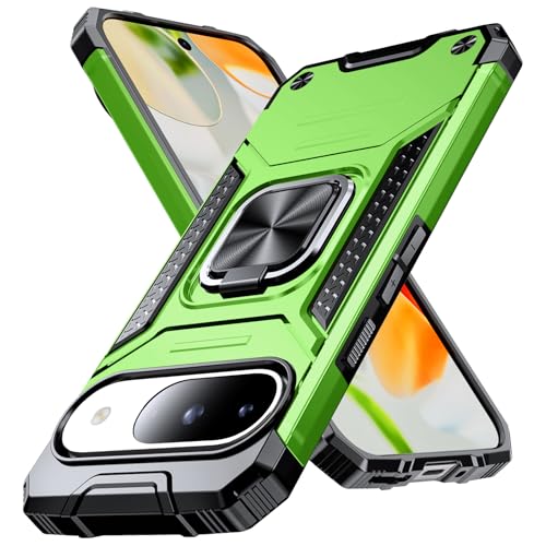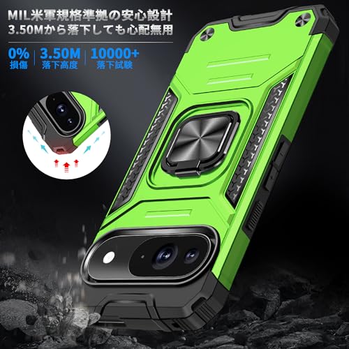 Google pixel 10/10 pro 用ケース リング付き 耐衝撃 米軍MIL規格取得 Pixel 9/9 Pro 用 カバー レンズ保護 リングつき TPU+PC 指紋防止 車載ホルダー対応 スタンド機能 防塵 薄型 軽量 落下防止 擦り傷防止 浅緑 C82-pixel 9-07