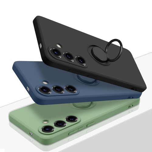 Galaxy S25 用 ケース リング付き シリコン 薄型 耐衝撃 レンズ保護 360°回転 車載ホルダー 防水 軽量 TPU ストラップホール 四隅衝撃吸収 黄変防止 一体型 おしゃれ 滑り止め フィット感 SC-51F SCG31 ギャラクシー S25 用 液状シリコンカバー 緑 AYS-21-289