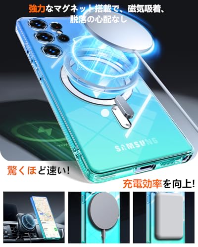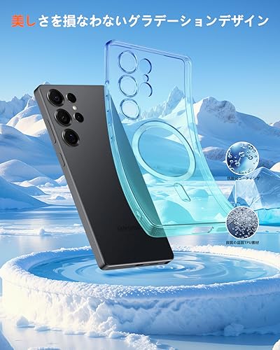 Galaxy S23 Ultra 用 ケース Magnetic対応 クリア 薄型 グラデーション色 SC-52D SCG20 用 スマホケース ストラップホール付き マグネット搭載 耐衝撃 米軍MIL規格取得 TPU 軽量 透明 ワイヤレス充電 おしゃれ 黄変防止防塵一体型 人気 ギャラクシー S23 ウルトラ 用 携帯カバー ブルー/緑 MD-CXJB-06-05