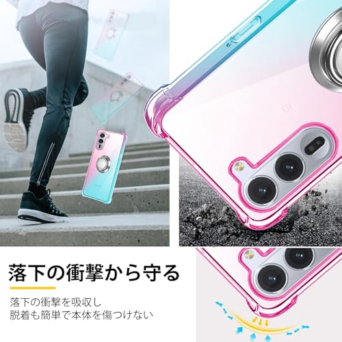 対応 arrows Alpha F-51F 用 ケース リング TPU 薄型 軽量シリコン グラデーション色 ケース 耐衝撃 指紋防止 車載ホルダー対応 防塵 一体型 人気 携帯カバー(ピンクグリーン)
