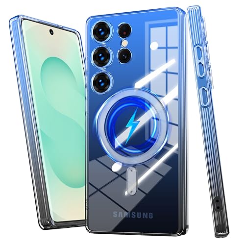 Galaxy S23 Ultra 用 ケース Magnetic対応 クリア 薄型 グラデーション色 SC-52D SCG20 用 スマホケース ストラップホール付き マグネット搭載 耐衝撃 米軍MIL規格取得 TPU 軽量 透明 ワイヤレス充電 おしゃれ 黄変防止防塵一体型 人気 ギャラクシー S23 ウルトラ 用 携帯カバー ブルー/ブラック MD-CXJB-06-04