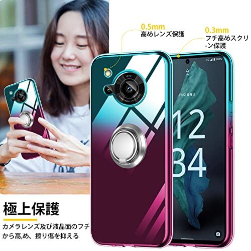 AQUOS R7 ケース リング 透明 tpu 薄型 軽量 シリコン グラデーション色 ケース 耐衝撃 指紋防止 車載ホルダー対応 防塵 一体型 人気 携帯カバー 绿の粉
