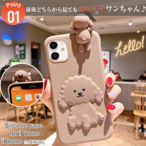 【LuceTerra】 iPhone シリコンケース イヌ 犬 子犬 かわいい キャラクター 体効果 耐衝撃 傷防止 レンズ保護 ソフト アイフォン (brown, iPhone15)