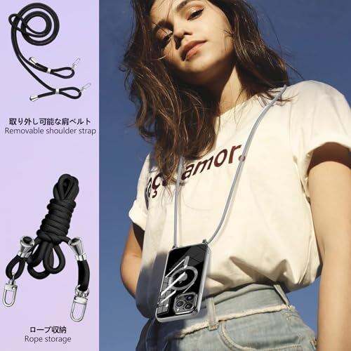 【実用的なストラップ】:携帯ケースに付属のストラップはとても便利です。必要に応じて取り外すことができ、腕や肩にも簡単に掛けられます。ストラップは太くて丈夫なので、安心感があります。長さを調整できるデザインは、とても親切で、腕に短く掛けたい時も、肩に長く掛けたい時も、適切な長さを見つけられ、さまざまな使用シーンに対応できます