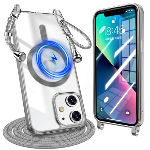 iPhone 12 用 ケース iPhone 12 Pro 用 ケース クリア ショルダー 耐衝撃 アイフォン 12/12 プロ 用 Magnetic対応 ストラップホール付き 肩掛け 紐付き TPU 斜めかけ 縄掛けケース 長さ調整可能 取り外し可能 落下防止 紛失防止 軽量 一体型 ワイヤレス充電対応 メッキ加工 アイフォン 用 カバー 銀 W-CXKS-02-07
