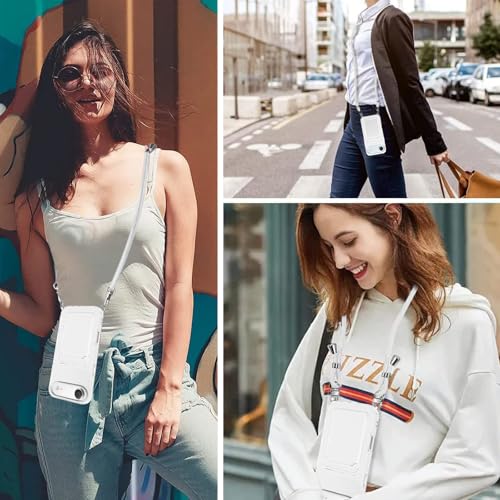 iPhone Air 用 ケース 背面ポケット カード収納 ショルダー iPhone Air 用 カバー 斜めかけ 縄掛け 肩掛け 首掛け ストラップ付き 薄型 軽量 TPU バンパー 韓国 可愛い かわいい アイフォンAir 用 スマホケース (ホワイト)