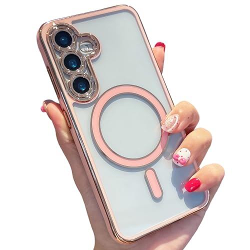 ZTOFERA Samsung Galaxy S23 FE 5G 用 クリアケース MagSafe対応 マグネット搭載 サムスン ギャラクシーs23fe ケース 韓国 可愛い おしゃれ 人気 スマホケース 軽量 女性 アクリル ハードバック 柔らかいバンパー カバー メッキエッジ 落下防止 耐衝撃 マグセーフ対応 磁気ケース (ピンク)
