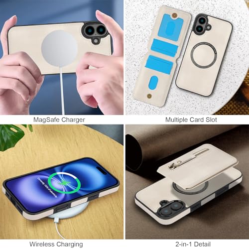 iPhone 16 ケース 手帳型 MagSafe対応 アイフォン16 ケース 手帳型 分離式 2 in 1 いphone16 ケース 手帳型 ワイヤレス充電対応 マグネット式 iPhone 16 携帯カバー 磁気着脱スマホケース iPhone 16 手帳型ケース Jajaful アイフォン16 ケース 耐衝撃 スタンド機能 財布型 レザー 薄型 軽量 カード収納 取り外し可能 オフホワイト