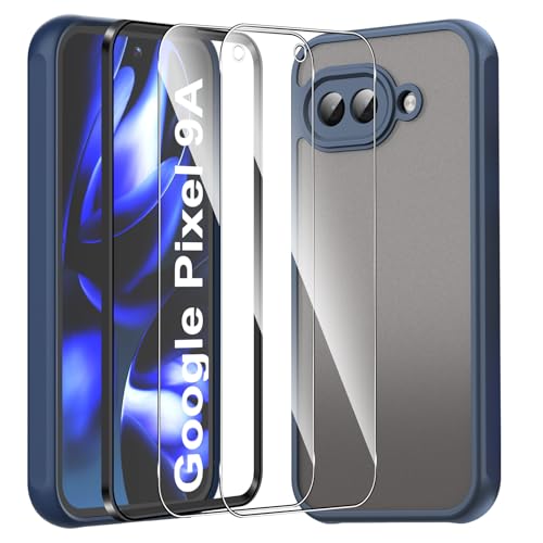 For Google Pixel 9a ケース 2枚ガラスフィルム付き Mosasa Google Pixel 9a カバー マット感 半透明 TPU+PC レンズ保護薄型 指紋防止 落下防止 安心保護 軽量 全面保護カバー (ブルー)
