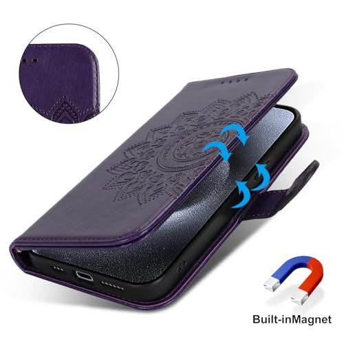 Cavor iPhone15 Pro Maxスマホケース 手帳型iPhone15 Pro Maxショルダー ケース 肩掛け首かけ斜めがけショルダー ケースiPhone15 Pro Max手帳型 ケースアイホン15 Pro Maxケースカード収納 iPhone15 Pro Max財布型ケースCASE【ウォレット機能】可愛 磁気機能クロスボディケース 横置 -ダークパープル