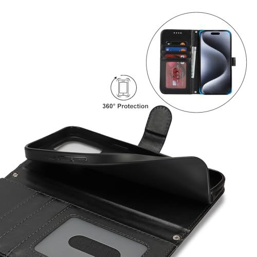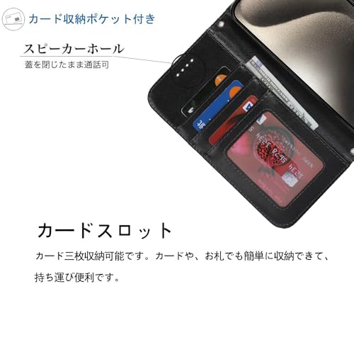 Cavor iPhone16 Proスマホケース 手帳型iPhone16 Proショルダー ケース 肩掛け首かけ斜めがけショルダー ケースiPhone16 Pro手帳型 ケースアイホン16 Proケースカード収納 iPhone16 Pro財布型ケースCASE【ウォレット機能】可愛 磁気機能クロスボディケース 横置-ブラック