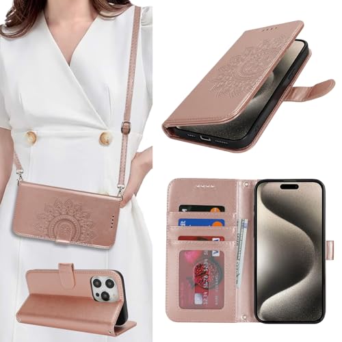 Cavor iPhone14 スマホケース 手帳型iPhone14 ショルダー ケース 肩掛け首かけ斜めがけショルダー ケースiPhone14 手帳型 ケースアイホン14 ケースカード収納 iPhone14 財布型ケースCASE【ウォレット機能】可愛 磁気機能クロスボディケース 横置 -ピンク