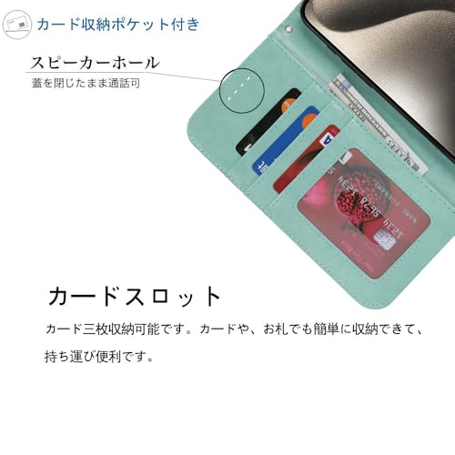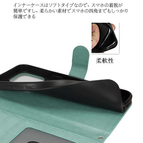 Cavor iPhone15 スマホケース 手帳型iPhone15 ショルダー ケース 肩掛け首かけ斜めがけショルダー ケースiPhone15 手帳型 ケースアイホン15 ケースカード収納 iPhone15 財布型ケースCASE【ウォレット機能】可愛 磁気機能クロスボディケース 横置-ネーグリーン