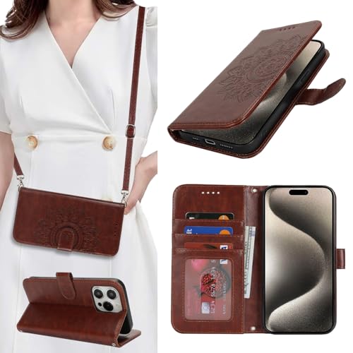 Cavor iPhone16 Pro Maxスマホケース 手帳型iPhone16 Pro Maxショルダー ケース 肩掛け首かけ斜めがけショルダー ケースiPhone16 Pro Max手帳型 ケースアイホン16 Pro Maxケースカード収納 iPhone16 Pro Max財布型ケースCASE【ウォレット機能】可愛 磁気機能クロスボディケース 横置-ブラウン