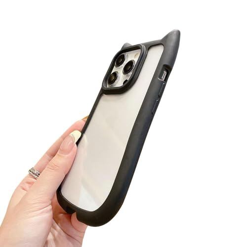 LUCKCOF ケース For iPhone 15 Pro 可愛い 猫耳 シンプル 漫画 韓国 立体 動物柄 シリコン 衝撃吸収 落下防止 アイフォン 15 Pro 專用スマホ ケース カバー 薄型 黄ばみにくい 特製スマホケース レンズ保護 スレ傷防止 女子力 ファッションクリエイティブかわいい かわいい携帯電話ケース -青