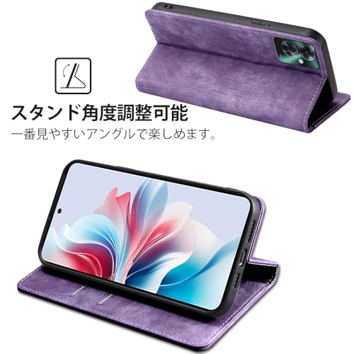 AiMaoo OPPO Reno11 A/OPPO Reno11 F 5G 対応 ケース 防塵 耐衝撃 傷つけ防止 軽量 手作り PUレザー カード収納 RFID磁気防止 マグネット スタンド機能 ケース 手帳型 OPPO Reno11 A/OPPO Reno11 F 5G 用 (パープル)