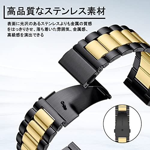 [ReHowy] Amazfit T-Rex 3 Pro 48mm/Helio Strap/Balance 2/Balance/Cheetah 対応 交換バンド 22mm 交換ベルト ビジネス風 アマズフィット バランス2 バンド ステンレス製 サイズ調節可能 調整工具付き コンパチブル Amazfit Bip 6/Bip 5/GTR 4 替えベルト ブラック/ゴールド
