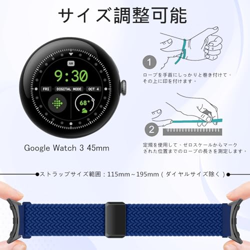 [ZoRoll] ナイロンバンド Google Pixel Watch 4 45 mm / 3 対応 編み伸縮性 腕時計ベルト スポーツストラップ スマートウォッチバンド ソフト 通気性 交換バンド 磁気クラスプ 脱着便利 男女兼用 替えベルト Google Pixel Watch 3 45 mm / 4 対応 (ブルー)