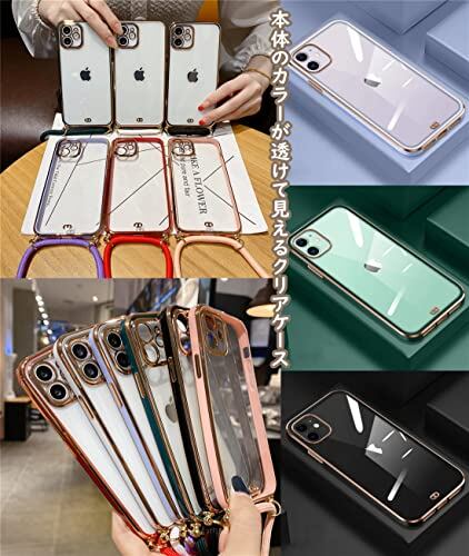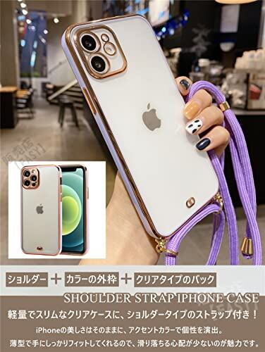iPhone 11Pro クリアケース スマホショルダー ネックストラップ アイフォン 11プロ 11Pro スマホケース FASY iPhone11Pro スマホケース 斜めがけ 肩掛け ショルダー タイプ ストラップ 透明 肩紐 紐 ひも 付き かわいい おしゃれ 大人女子 メンズ 耐衝撃 メッキ加工 iPhone11Pro 携帯ケース カバー 軽量 薄型 TPU シリコン パープル