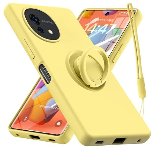 AQUOS Wish4 用 ケース リング付き SH-52E 用 ケース シリコン 耐衝撃 ストラップホール付き TPU ソフト カバー 薄型 スタンド機能 車載ホルダー対応 リストストラップ 落下防止 防塵 軽量 一体型 変形防止 全面保護カバー アクオス ウィッシュ4 用 ケース 黄 W-YZHS-05-05