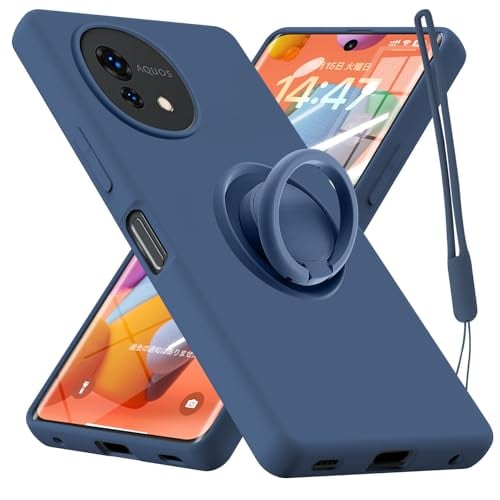 AQUOS Wish4 用 ケース リング付き SH-52E 用 ケース シリコン 耐衝撃 ストラップホール付き TPU ソフト カバー 薄型 スタンド機能 車載ホルダー対応 リストストラップ 落下防止 防塵 軽量 一体型 変形防止 全面保護カバー アクオス ウィッシュ4 用 ケース 青 W-YZHS-05-03