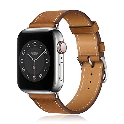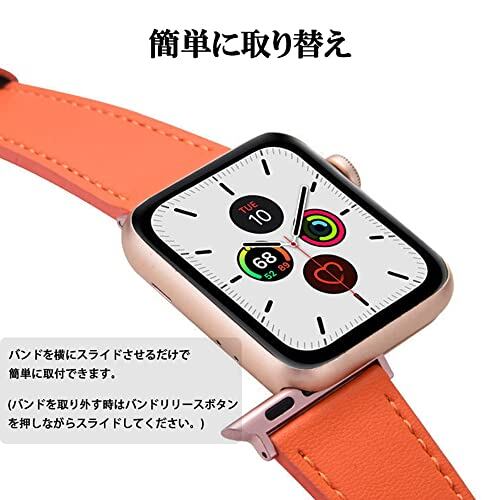 上品素材使用:天然の革 アップルウォッチバンド。天然の革の質感が、スタイリッシュな雰囲気と風合いを与えます。ストラップの裏地にもカーフスキンを使用しているため、着け心地も抜群。摩耗しにくいのも特徴です。