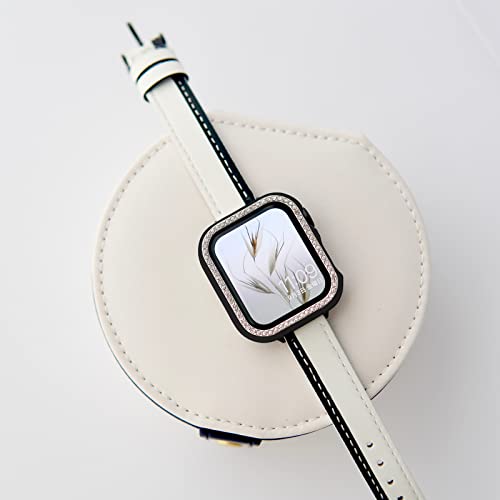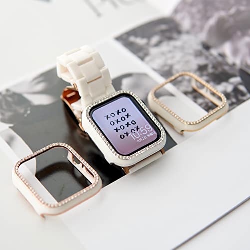Gaacal プラスチック製Apple watch ケース アップルウォッチ保護ケース装着簡単 ダイヤカットストーン付き ホワイトフレーム 超薄型 耐衝撃Series6 SE 5 4カバー Series6 SE 5 4カバー38mm 40mm 42mm 44mm (38mm, ローズゴールド)