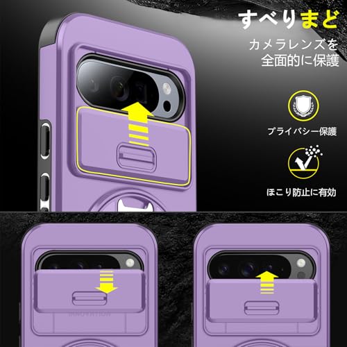 WZOYXOC 対応 Google Pixel 10 Pro XL 用 ケース スタンド付き リング付き 耐衝撃 レンズ保護 スライドカメラカバー TPU+PC 軽量 滑り止め 落下保護 スタンド機能 車載ホルダー対応 ピクセル 10 プロ XL 携帯ケース 紫 R-LK-GP10PXL-04