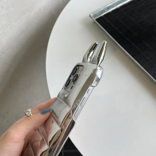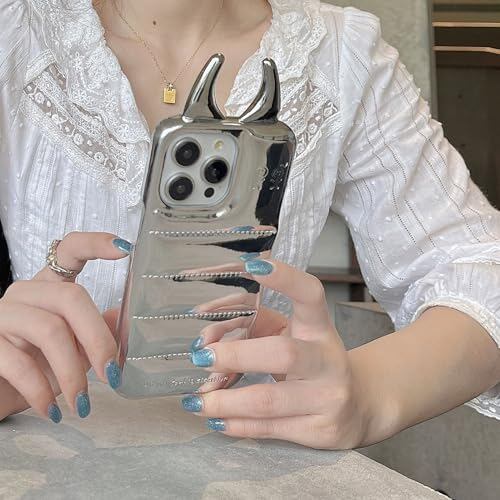 MAYABABY iPhone12/12Pro対応スマホケースシンプル かわいい 3D悪魔の角 デザイン ぬいぐるみ ダウンジャケット スリムフィット ワイヤレスケース 携帯ケース 面白い 耐衝撃 アップル 男女 アイデア 人気 韓国 おしゃれ (シルバー, iPhone 12/12Pro)