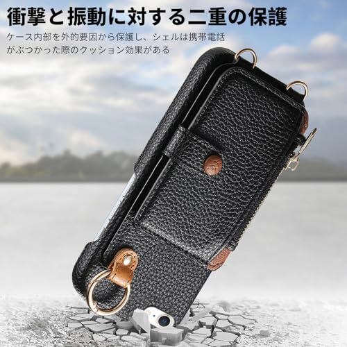 【収納機能】ファスナー式の小銭入れ、窓口式のカード入れ、カードスロット複数付き、それにスナップ式のプリップで大事なカードたちを完全に保護します。必要に応じて身だしなみを整え、気まずい思いをしないミラーを内蔵。このiPhone SEケースはシンプルで便利なだけでなく、コンパクトで美しいです。