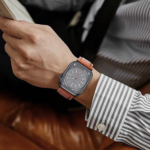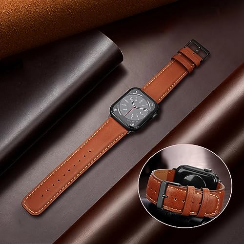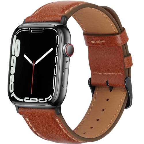 [HITZEE] アップルウォッチ バンドレザー コンパチブル Apple Watch バンド 42mm 41mm 40mm 38mm, 本革交換ストラップ Apple Watch SE2 SE シリーズ10 9 8 7 6 5 4 3 2 1に対応 (レッドブラウン)