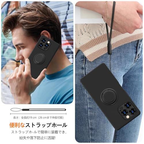 QOUNVYW Xperia 1 VI 用 ケース リング付き SO-51E SOG13 用 ケース シリコン 耐衝撃 ストラップホール付き TPU ソフト カバー 薄型 スタンド機能 車載ホルダー対応 リストストラップ 落下防止 防塵 軽量 一体型 変形防止 全面保護カバー 黒