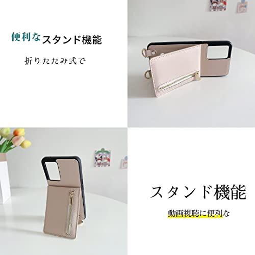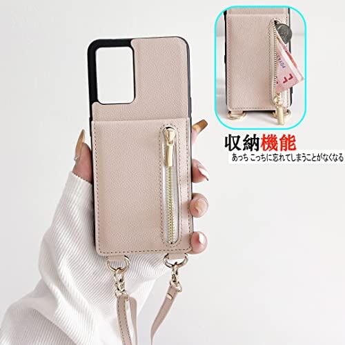 FSHCPJ Galaxy A53 5G ケース 高質レザー Galaxy A53 カバー 肩掛け 首かけ 斜めがけ SC-53C ケース ショルダー ギャラクシー A53 ケース ミラーケース SCG15 ケース 便利 カードポケット スタンド機能 落ち着いた色 調節可能 軽量 多機能 縦置き ICカード収納 財布型 耐衝撃 携帯 鏡付き ケース むぎいろ