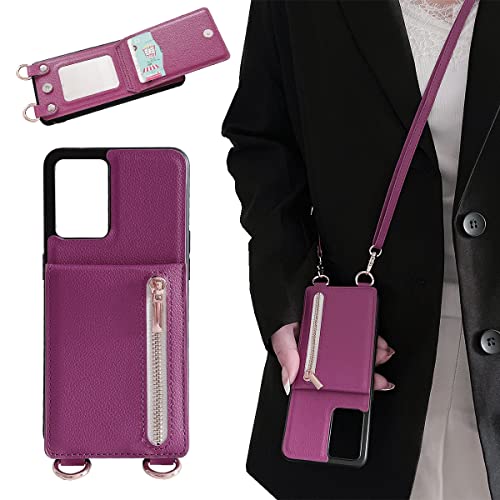 Galaxy A53 5G ケース 高質レザー Galaxy A53 カバー 肩掛け 首かけ 斜めがけ SC-53C ケース ショルダー ギャラクシー A53 ケース ミラーケース SCG15 ケース 便利 カードポケット スタンド機能 落ち着いた色 調節可能 軽量 多機能 縦置き ICカード収納 財布型 耐衝撃 携帯 鏡付き ケース スミレ