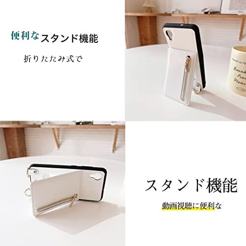 Galaxy A22 ケース 高質レザー Galaxy A22 カバー 肩掛け 首かけ 斜めがけ SC-56B ケース ショルダー ギャラクシー A22 ケース ミラーケース A22 5G ケース 便利 カードポケット スタンド機能 落ち着いた色 調節可能 軽量 多機能 縦置き ICカード収納 財布型 耐衝撃 携帯 鏡付き ケース ホワイト