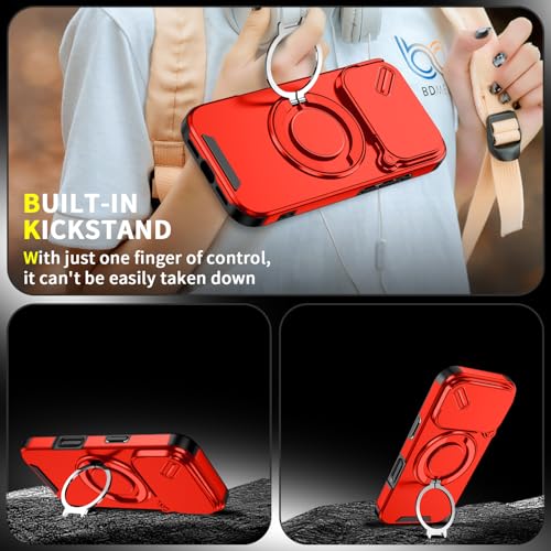 Cakublse いphone17ProMax 用 ケース Magsafe対応 PC + TPU 二重保護 カメラの保護 落下防止 米軍MIL規格 耐衝撃 アイフォン17ProMax対応 カバー リング付き スタンド付き レッド 赤