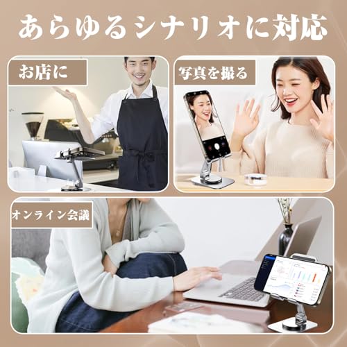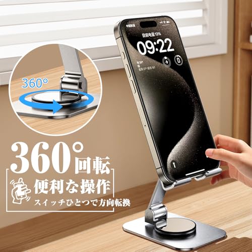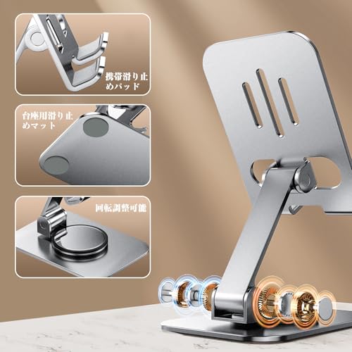 スマホスタンド 卓上 タブレット スタンド iPad スタンド ホルダー 360°回転可能 折り畳み式 高さ角度調整可能 アルミ製 持ち運びに便利 iPad/iPad Pro/スマホ/モバイルモニター/Switch/Kindle/Fire HD多機種対応 (シルバー)