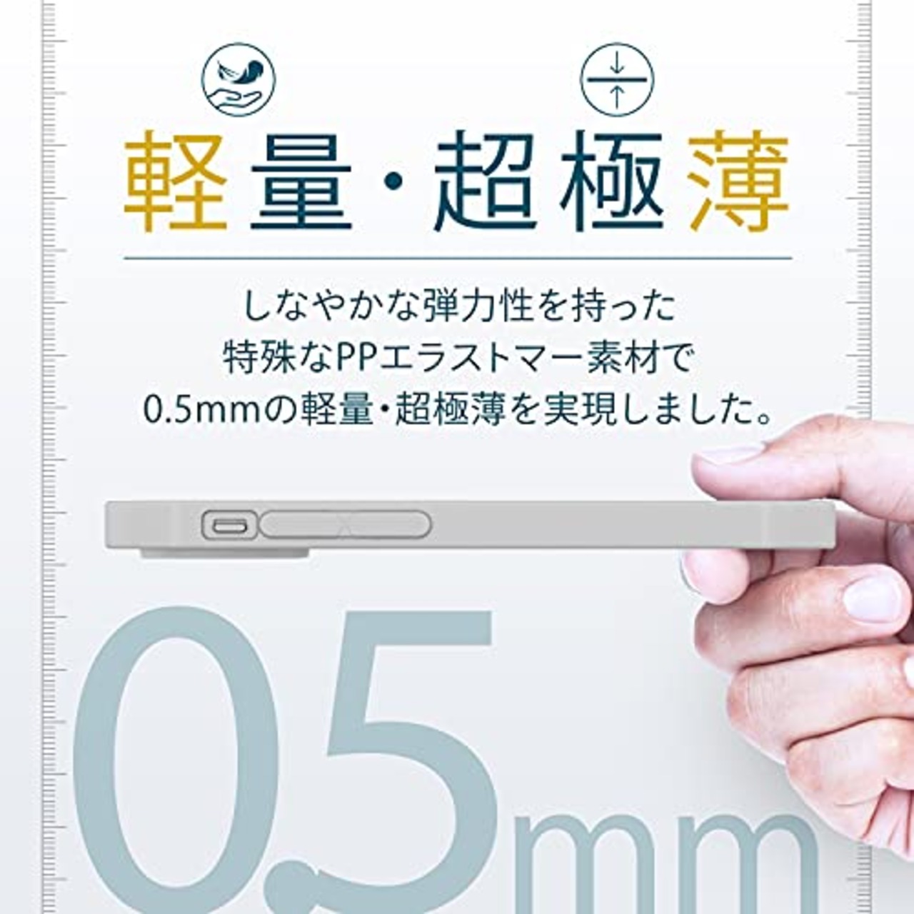 本体をキズや汚れから守る、最薄部分0.5mmのスリムなiPhone 13 mini用ソフトケースです。