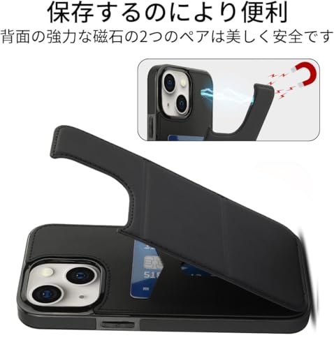 NKECXKJ iPhone 15 用ケース + 强化 ガラス フィルム PUレザー 折畳式 カード収納 スタンド機能 携帯ケース 軽量 衝撃吸収 Case Cover いphone15 あいふおん15 i phone15 アイフォン15 対応 財布型 背面 カバー レディース 6.1インチ(ブラック)