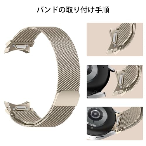 Hinnwer 時計バンド Samsung Galaxy Watch FE/Watch 7/Watch 6/Watch 5/4 (40mm 44mm)対応 金属バンド (One-Click)クイックリリースボタン 交換バンド ステンレス鋼 磁気付き 調節可能 コンパチブル Galaxy Watch 6 Classic/4 Classic/5 Pro 用ストラップ (スターライトカラー)