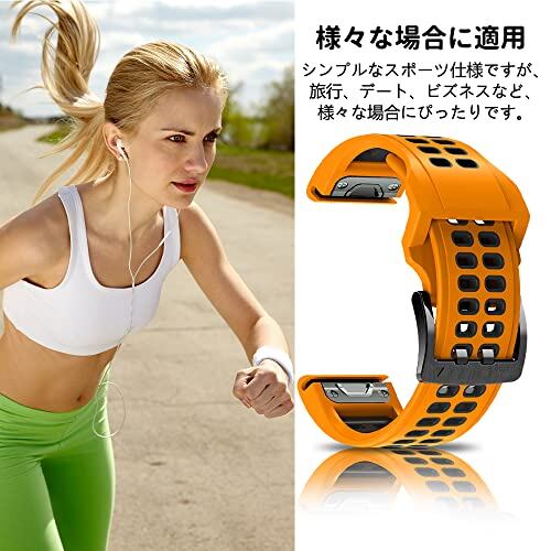 [MosFoil] Garmin Tactix 8 51mm/Fenix 8 51 mm/Enduro 3/Descent Mk3i/tactix 7 AMOLED/Instinct 2X 対応 バンド QuickFit 26mm 交換ベルト サイズ調節可能 シリコン製 弾力性 コンパチブル Garmin Fenix 7X Pro/7X/Fenix 6X バンド(オレンジ)