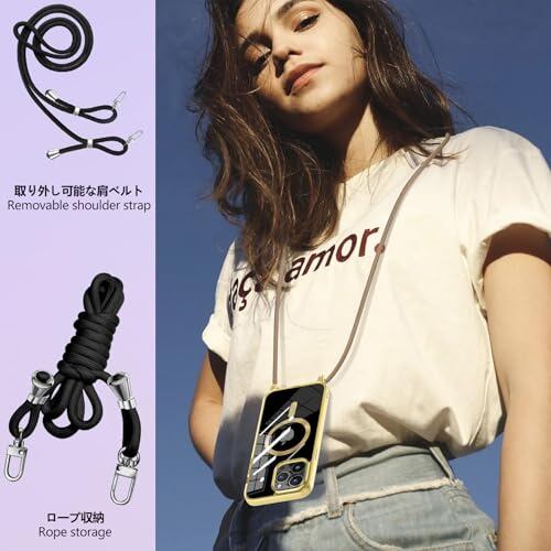【実用的なストラップ】:携帯ケースに付属のストラップはとても便利です。必要に応じて取り外すことができ、腕や肩にも簡単に掛けられます。ストラップは太くて丈夫なので、安心感があります。長さを調整できるデザインは、とても親切で、腕に短く掛けたい時も、肩に長く掛けたい時も、適切な長さを見つけられ、さまざまな使用シーンに対応できます