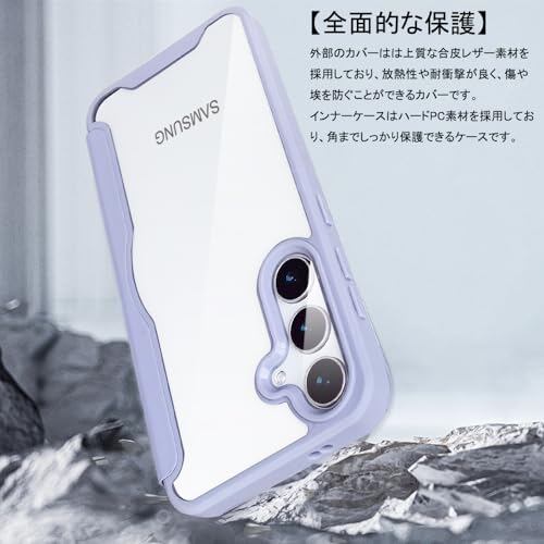 YUYIB スマホケース 対応 Samsung Galaxy s23 Plus 手帳型 背面 クリア 透明 高級なPUレザー+PCパネル+TPUバンパー マグネットが内蔵 衝撃吸収 軽量薄型 ブランド スマホケース ギャラクシー s23プラス 手帳型 ケース (浅い-パープル, Galaxy s23 Plus)
