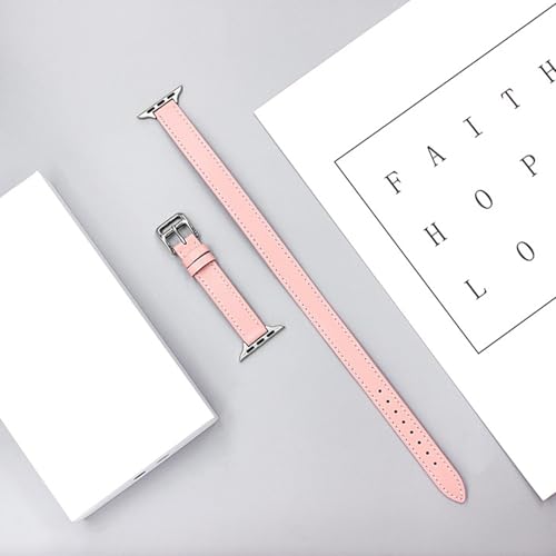 [COOL MOBILE COMPANY] アップルウォッチ バンド 38mm 40mm 41mm 42mm レザー 二重巻き スリム ロング ダブルベルト レディース 本革 (ピンク)