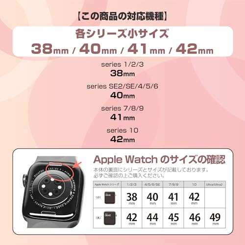 Apple Watch series10(42mm) / 9・8・7(41mm)/ 6・5・4・SE・SE2(40mm)/ 3・2・1(38mm)に対応。