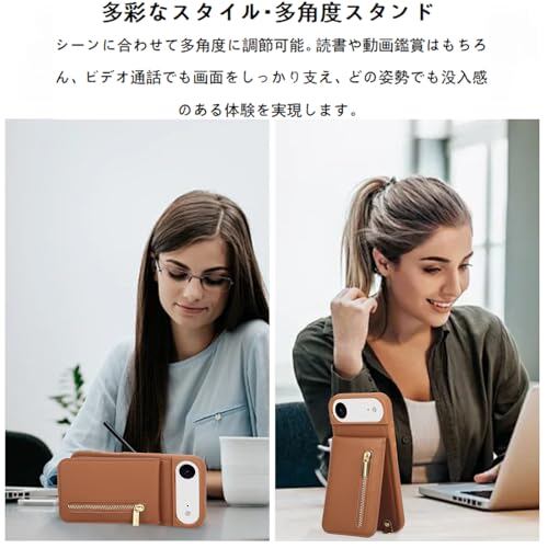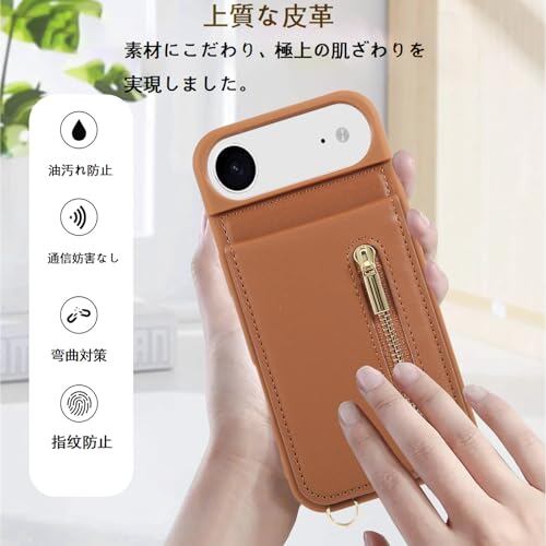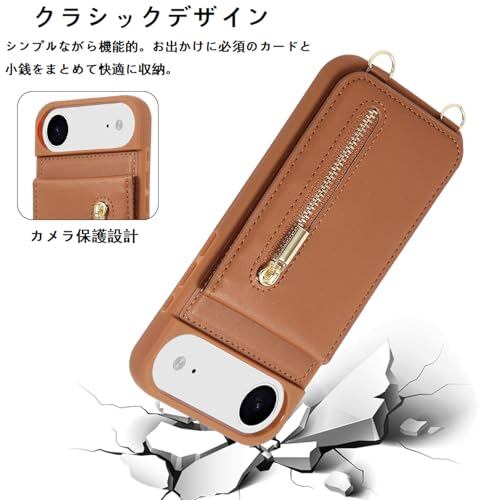 Jcxtrombulous対応 iPhone 17 Air ケース 背面カード マグネットICカード収納 調節可能なストラップ付き 耐衝撃な 携帯ケース アイホン17 Air スマホ PUレザー スタンド RFIDブロッキング技術ケース 6.9inchブラウン