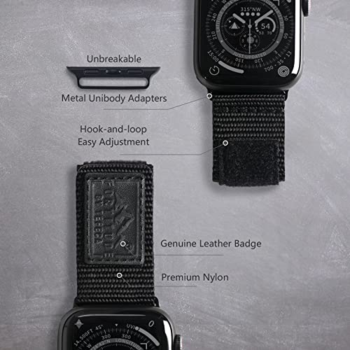 Tefeca Fortitudeシリーズの標準ワイドバンドはApple Watch と対応していますンド アップルウォッチ バンドUltra/Ultra 2/10/9/8/7/6/SE/5/4/3/2/1 に対応 (ブラックレーベルナイロン, 44/45/46/49mm)