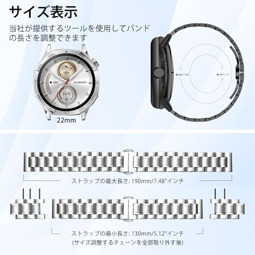 [ZoRoll] 22 mm バンド Huawei Watch GT 6/GT 6 Pro/GT 5/GT 5 Pro/GT 4/4 (46 mm)/Ultimate 2 対応 ステンレスバンド 金属ベルト 腕時計バンド スマートウォッチバンド 交換ベルトステンレス製 防錆 男女兼用 サイズ調整工具付き 用の Huawei Watch 4 Pro 48 mm (シルバー)